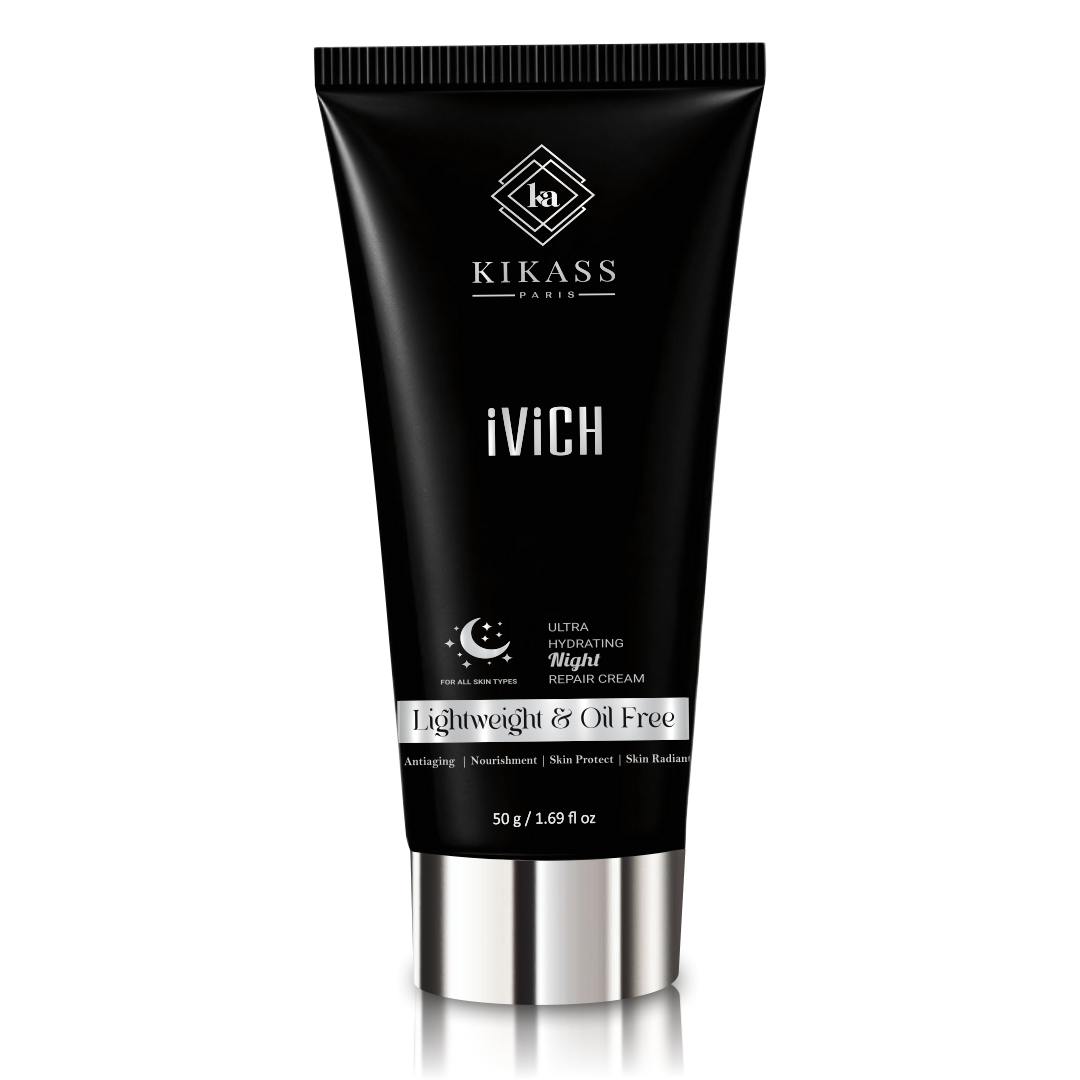 The iViCH Ultra Hydrating Night Repair Cream by Kikass Paris is a luxurious blend of clean, skin-repairing ingredients designed to nourish and restore your skin while you sleep. Enriched with the goodness of Hyaluronic Acid, Niacinamide, and plant-powered botanicals, it deeply hydrates, repairs, and revitalizes tired skin overnight.