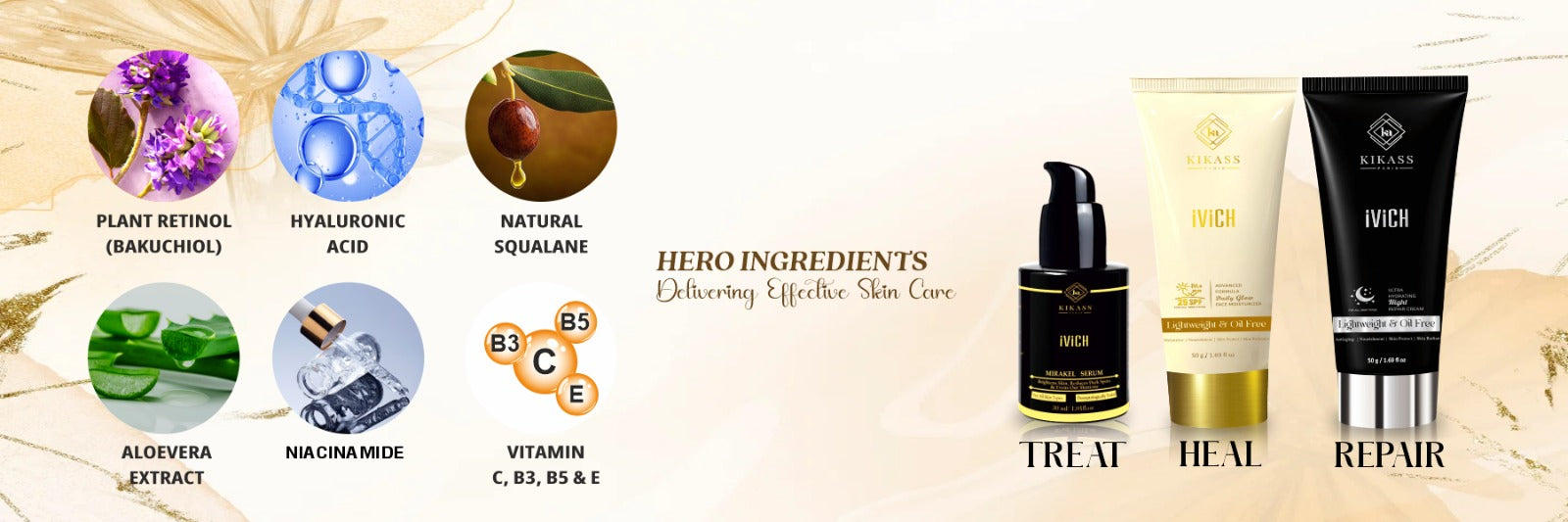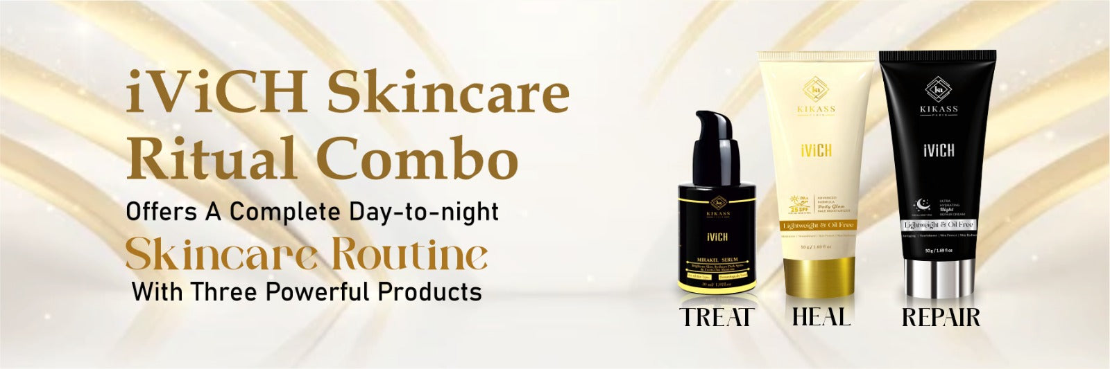 KIKASS iViCH Combo III- Skin Care Combo | Day Cream 50 g | Night Cream 50 g and Serum 30 ml